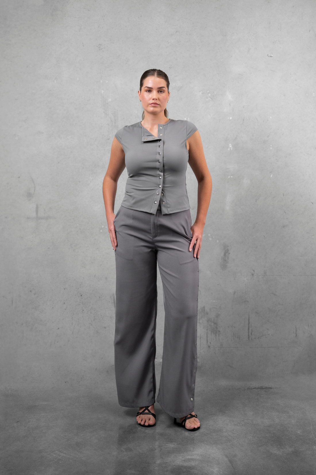 Engineered for the salon, made for movement.The Bailey Press Stud Pant in Grey combines versatility,...