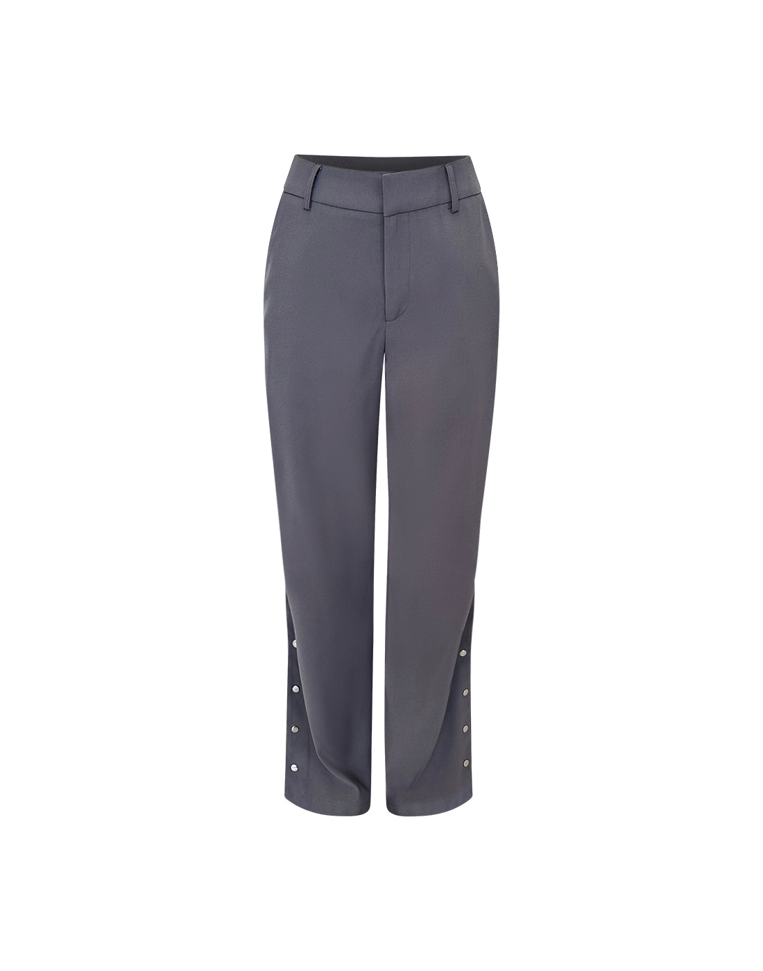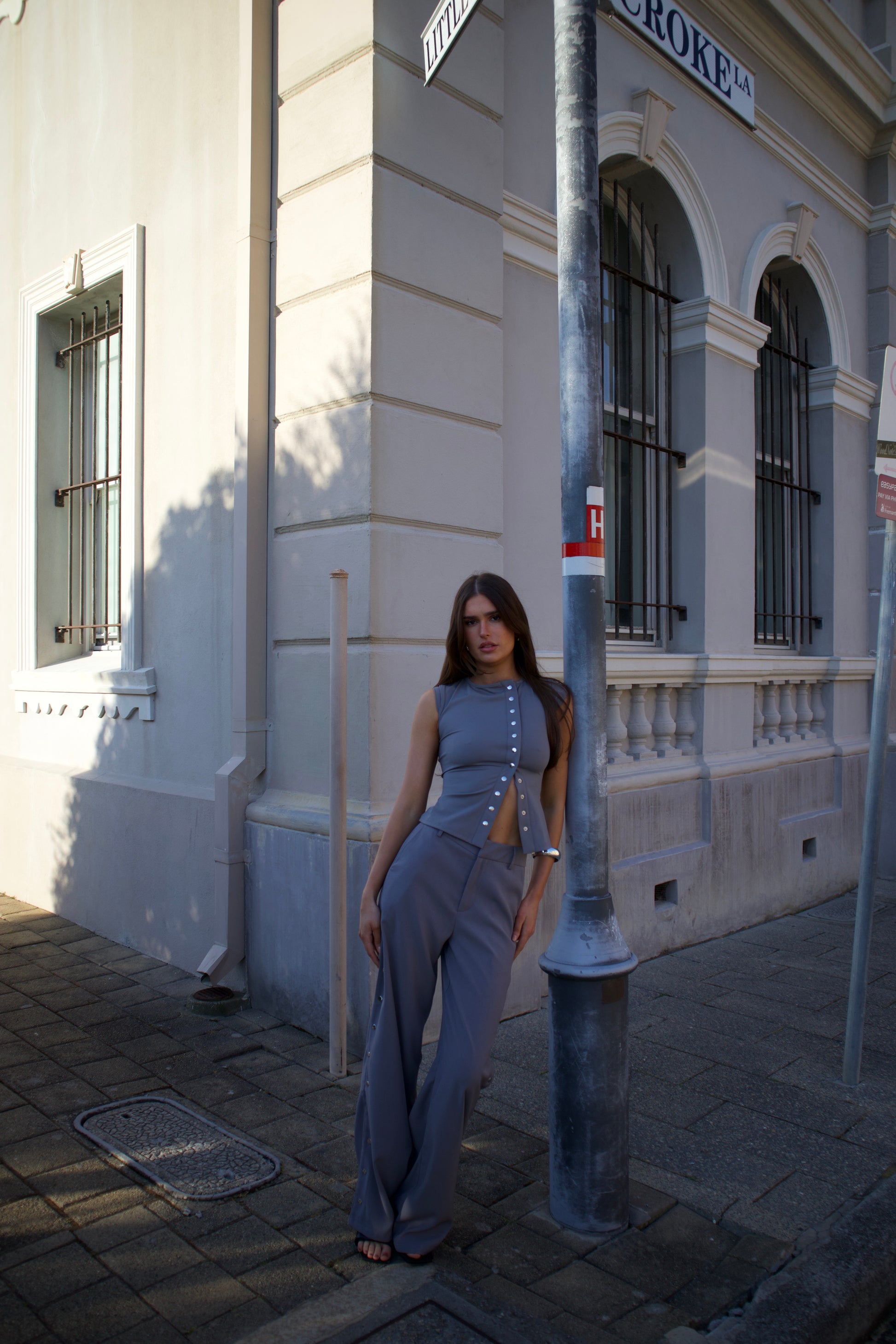The Bailey Press Stud Pant in Grey combines versatility, comfort, and effortless style. Finished with silver press studs along the outer seam, you can wear them closed for a sleek, tailored silhouette - or slightly open for ease when you’re on the move.