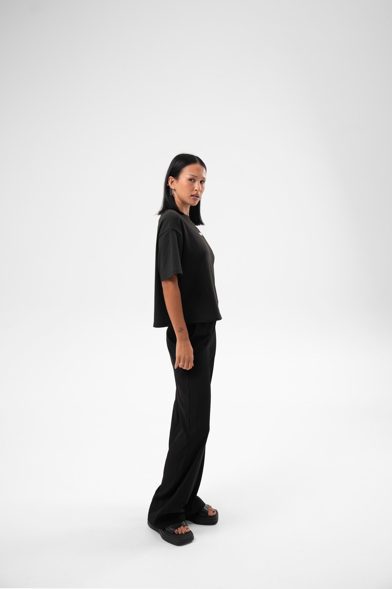Available in black or white, your new go-to base layer for off-duty days or on-the-floor hustle.