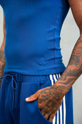 A new essential for the modern creative. The Cooper Contrast Stripe Pant in Cobalt brings elevated streetwear energy to everyday workwear. With a tailored athletic cut, these full-length track pants feature four bold white stripes down the leg and a clean, tapered silhouette that moves with you - on or off the salon floor.