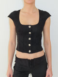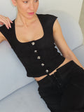 Cut in soft suede with clean, sculpted lines, the Dokta Top features a square neckline, cap sleeves, and statement silver hardware. Its tailored silhouette creates a sleek, body-shaping fit while still feeling effortless and versatile. Pair it with the Dakiota Pant for the ultimate power set or wear it solo to elevate any outfit.