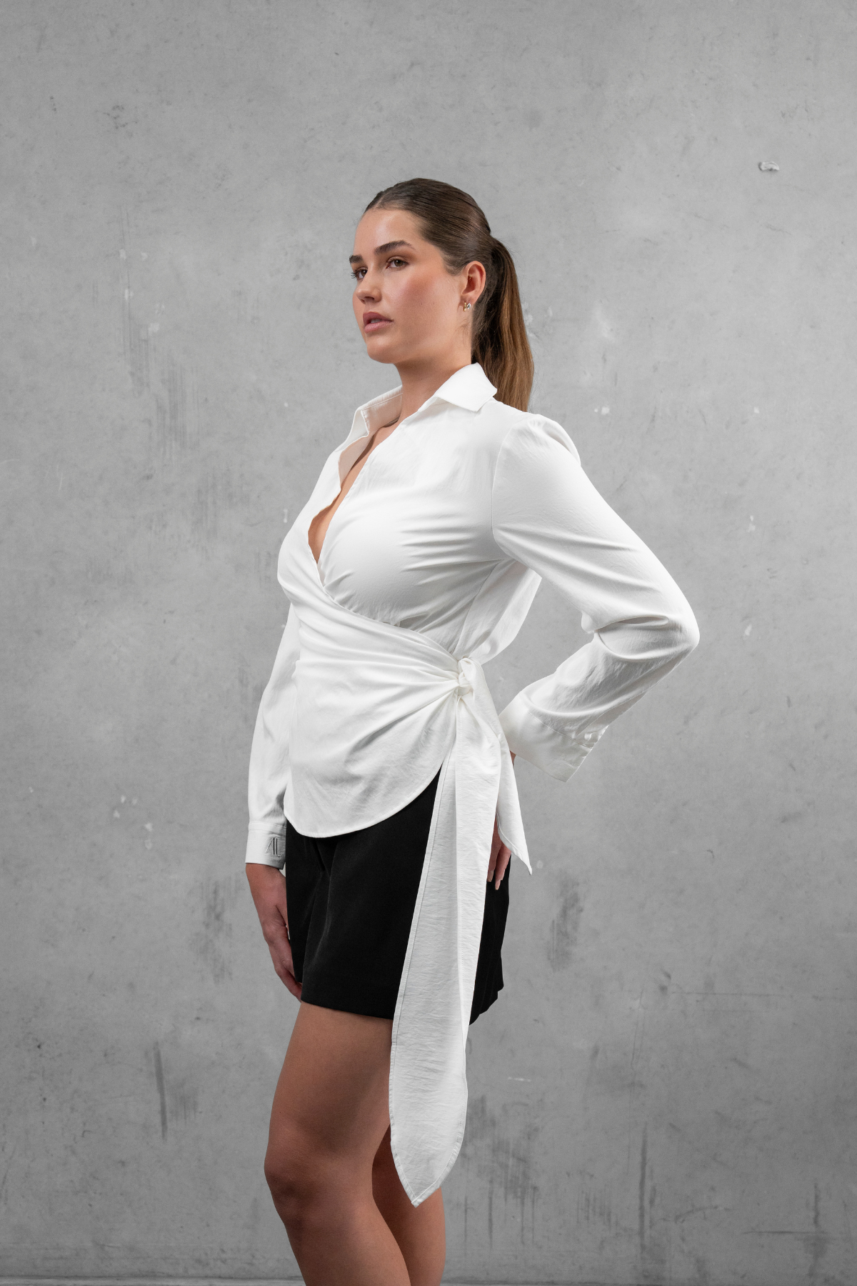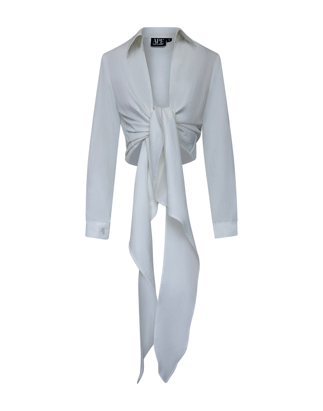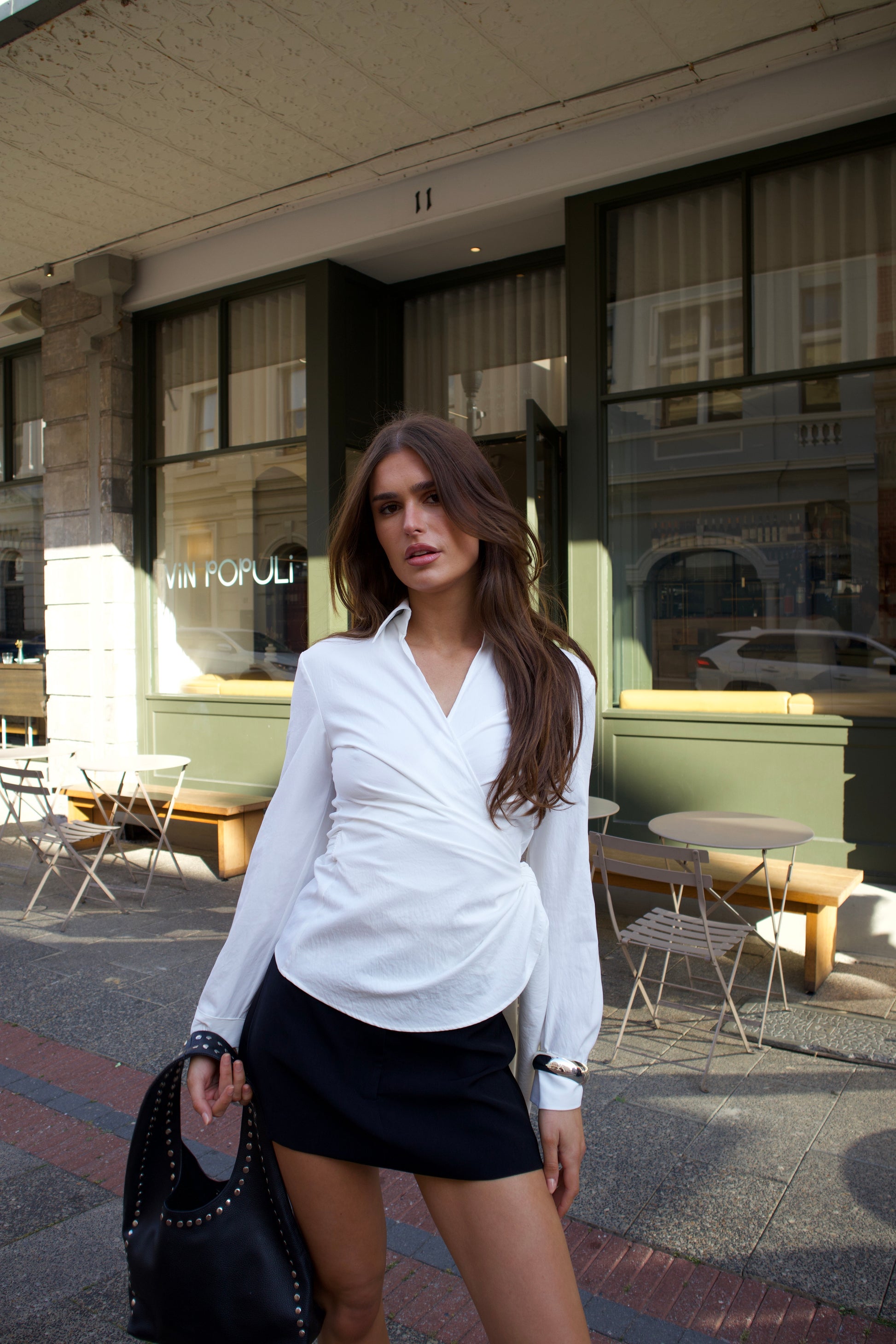 Redefining versatility.The Ella Shirt brings effortless sophistication with its ruched front tie detail and soft stretch fabrication. Designed to be worn in multiple ways, this piece transitions seamlessly from salon to after hours. Style it tied at the front, tied on the side, wrapped or tucked - the possibilities are endless.
