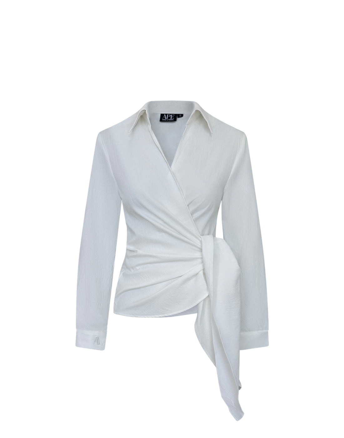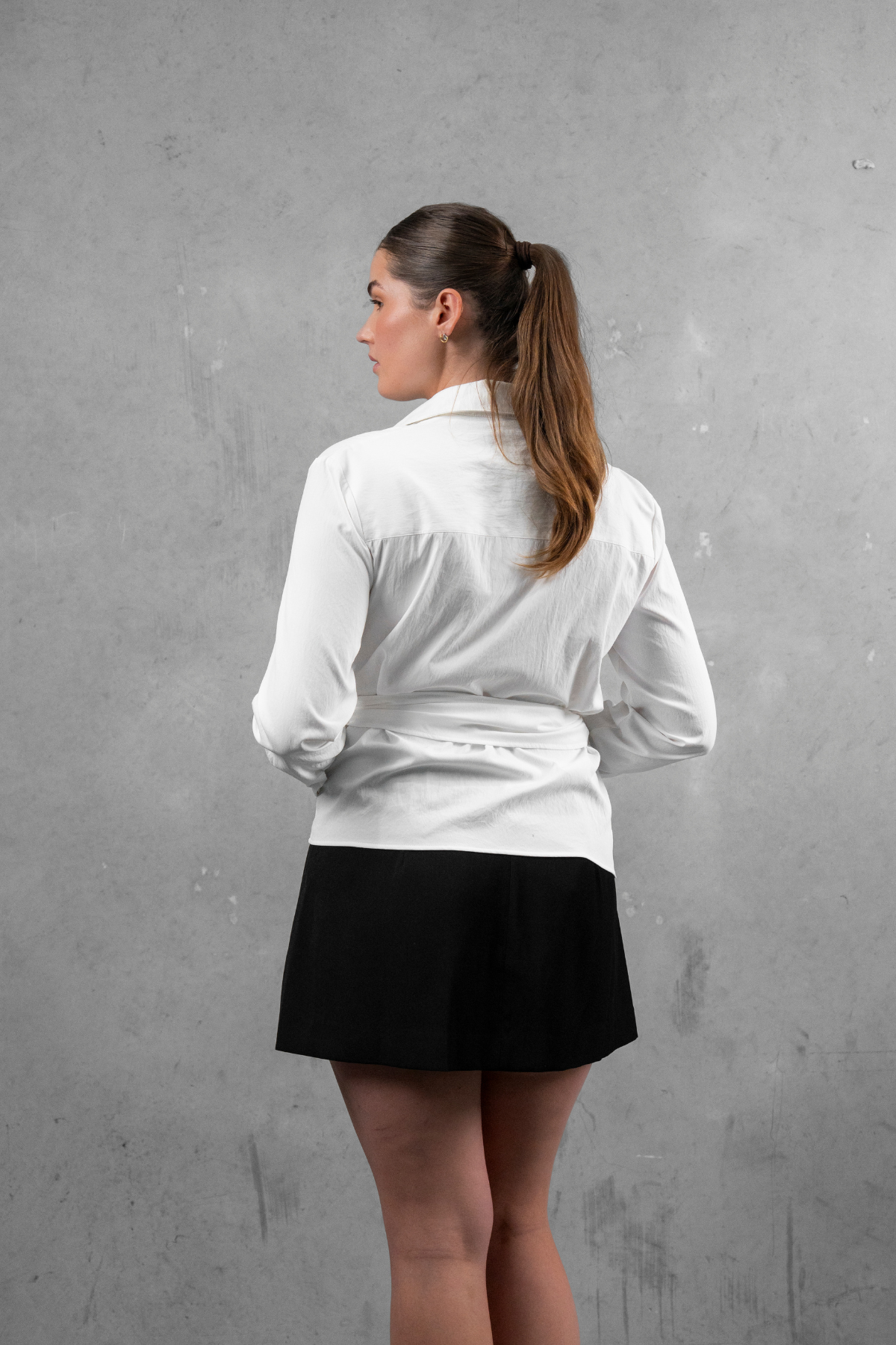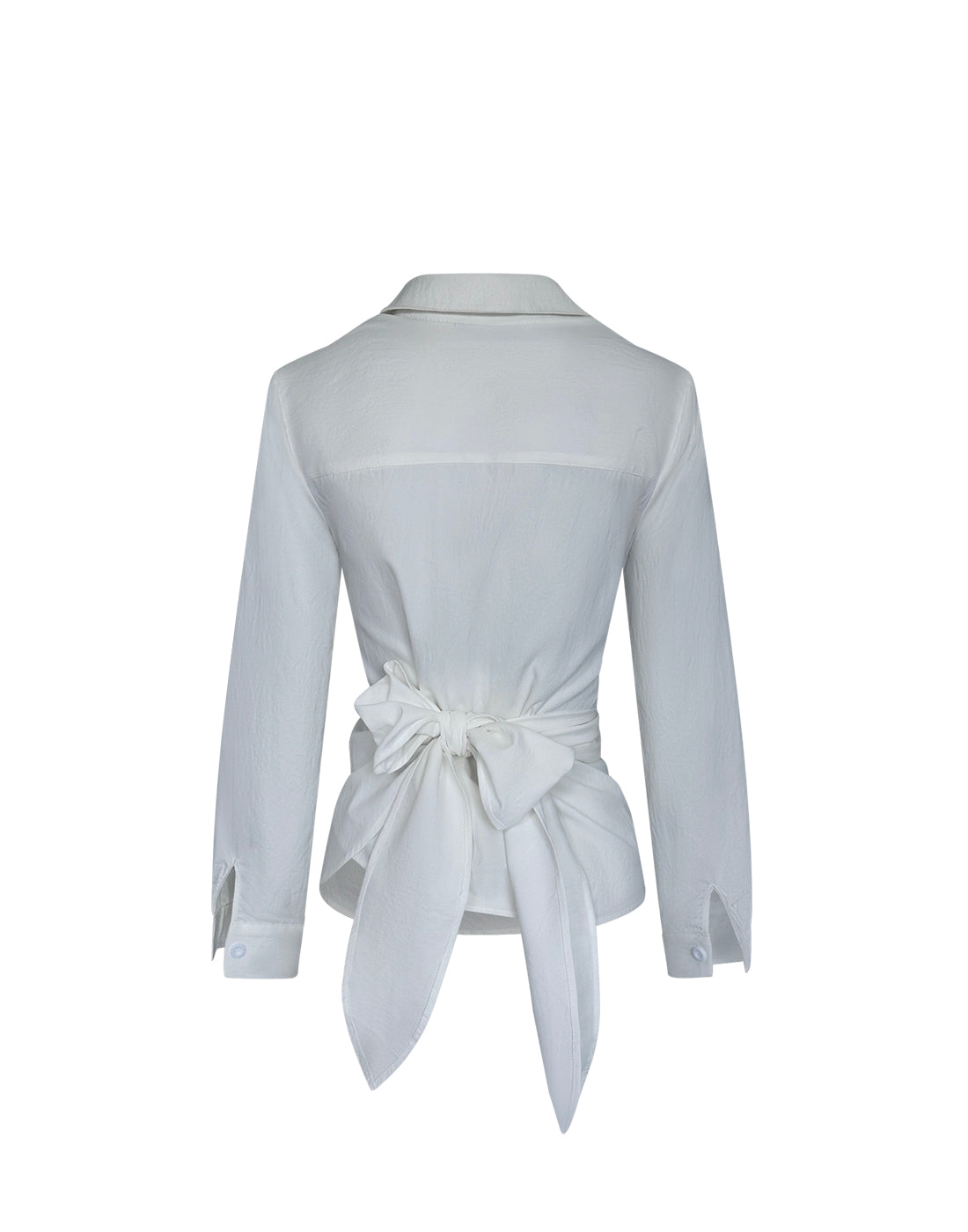 Redefining versatility.The Ella Shirt brings effortless sophistication with its ruched front tie detail and soft stretch fabrication. Designed to be worn in multiple ways, this piece transitions seamlessly from salon to after hours. Style it tied at the front, tied on the side, wrapped or tucked - the possibilities are endless.