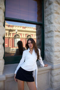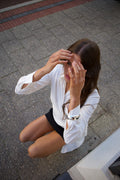 Finished with a sharp collar, elongated cuffs, and a subtle AL embroidered logo on the sleeve cuff, the Ella Shirt combines structure, comfort, and understated luxury in one timeless piece. Also available in Black for a tonal look.