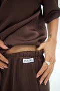 Effortless polish meets all-day comfort. The Stella Satin Pant in Chocolate is crafted from lightweight, fluid satin with a relaxed leg and adjustable drawstring waist for easy wear from salon floor to after-hours.