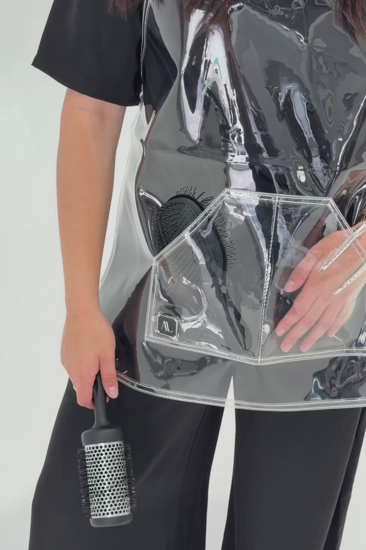 Elevate your salon style with our The Apron! A TPU apron, designed with both luxury and practicality in mind. Crafted to withstand the daily demands of hairdressing, this apron offers high-end features while maintaining a sleek aesthetic. A must-have for any stylist looking to combine fashion with function!