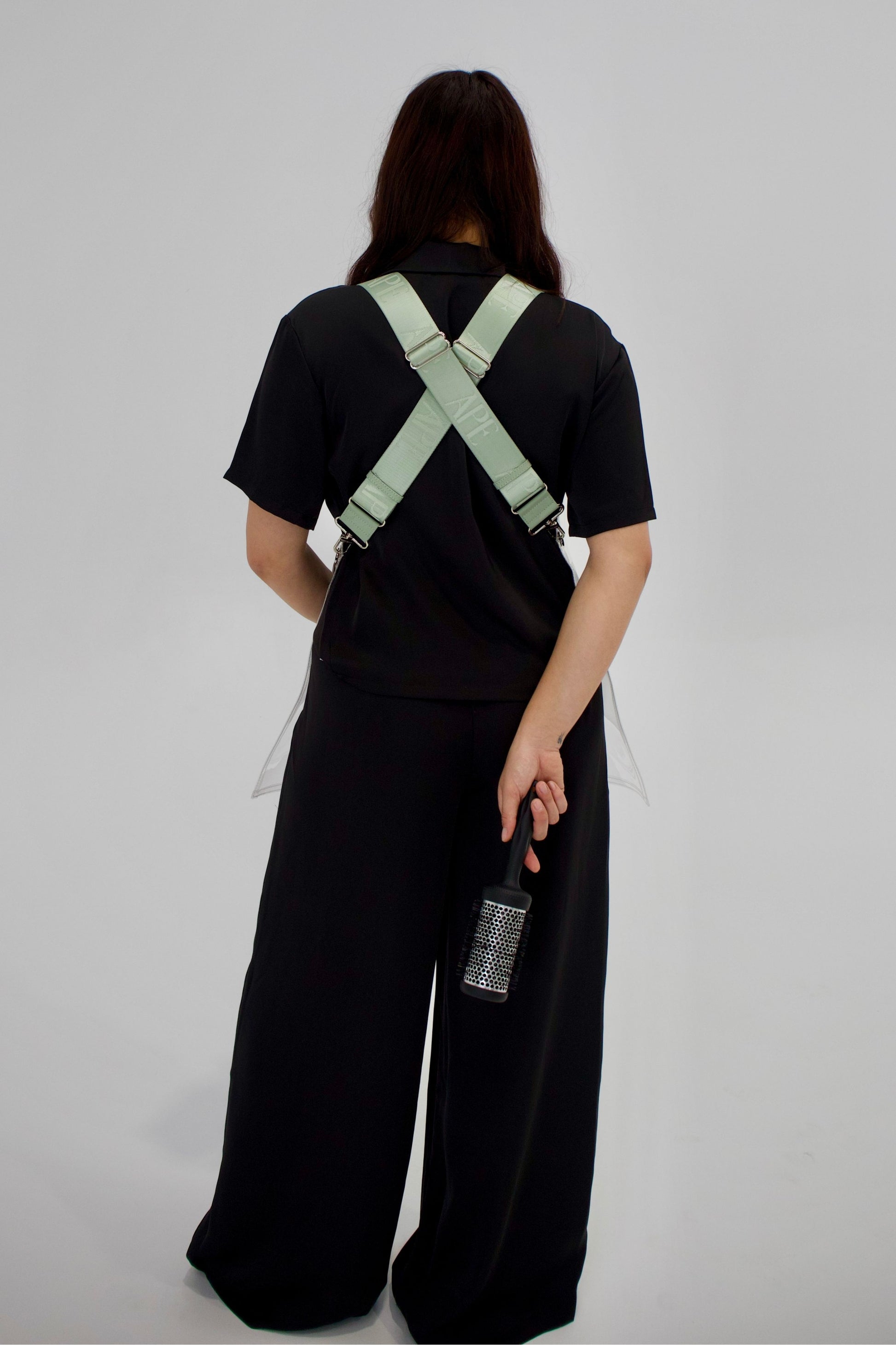 Our apron straps are crafted from durable nylon/polyester blend, detailed with embossed vegan leather and finished with silver hardware. To maintain their appearance and functionality, we recommend spot cleaning the straps as needed using a damp cloth and mild soap. Gently wipe down any areas with visible marks or buildup, taking care not to overly saturate the materials.